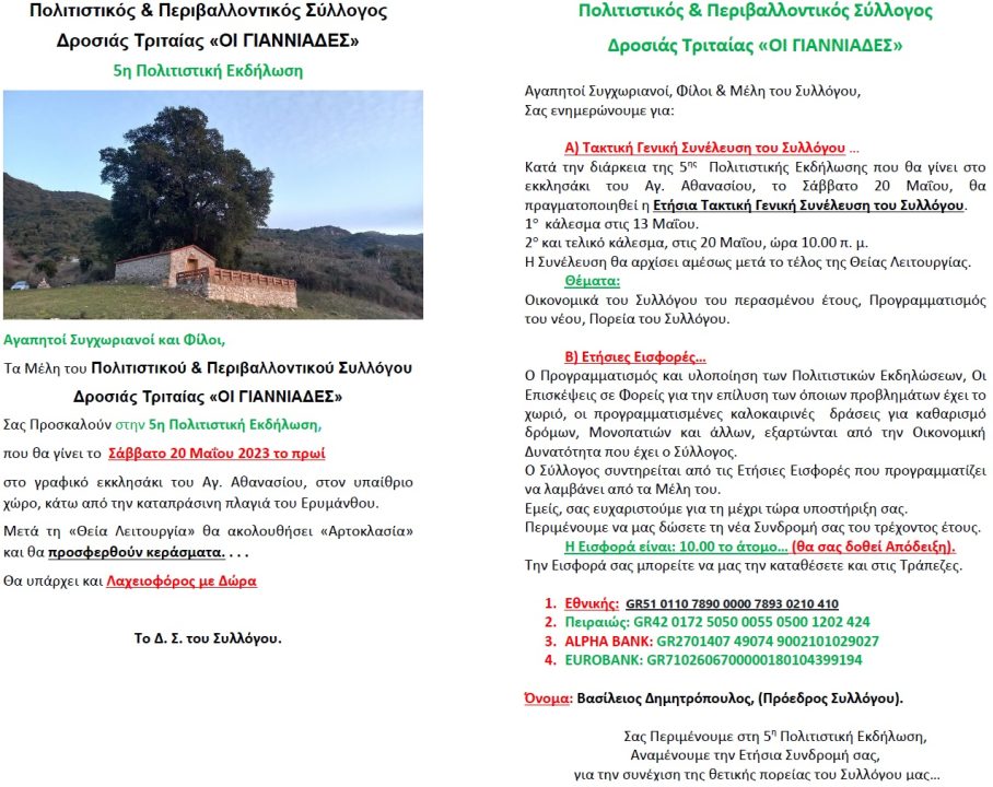 1 July 2023 1 July 2023Categories EventsEvent Update – Annual Contribution, GIANNIADES, 01-07-2023Drosias Tritaias "THE GIANNIADES" Dear, we inform you about: A) ANNUAL CONTRIBUTION – SUBSCRIPTION. For the […]